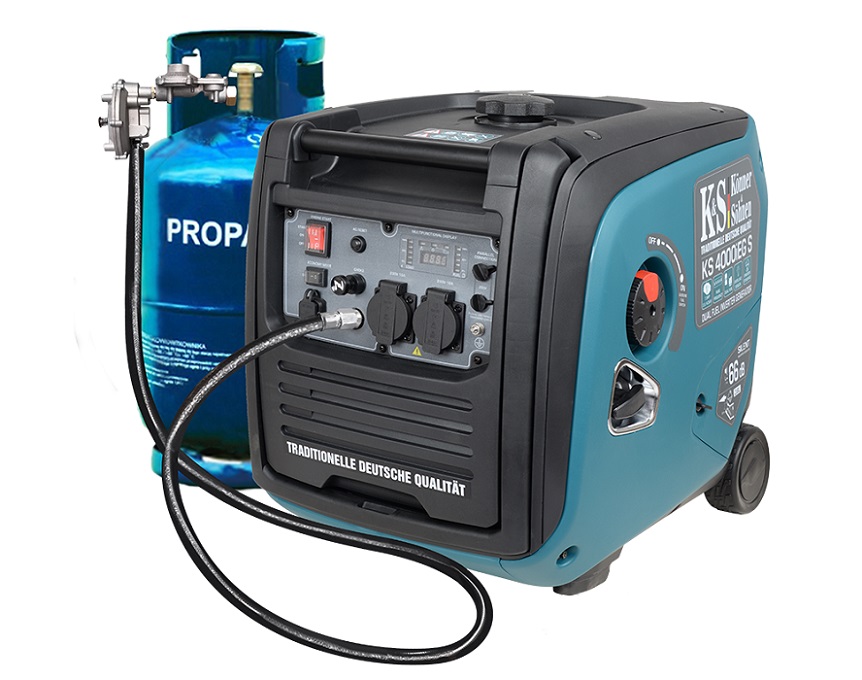 • Generator inwerterowy LPG/benzynowy KS 4000iEG S niemieckiej marki Konner&Sohnen w dźwiękoszczelnej obudowie służy jako wygodne, przenośne i ciche źródło energii. Główną cechą tego modelu jest to, że zapewnia czystą sinusoidę prądu.
