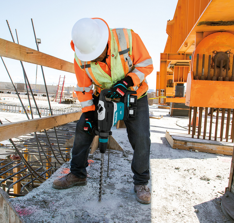 Makita młot udarowo-obrotowy DHR400ZKUN działa na 2 akumulatory 18V LXT, co łącznie daje napięcie zasilania 36V. Posiada 2 tryby pracy: wiercenie z udarem i kucie, co czyni go wszechstronnym narzędziem na placu budowy.