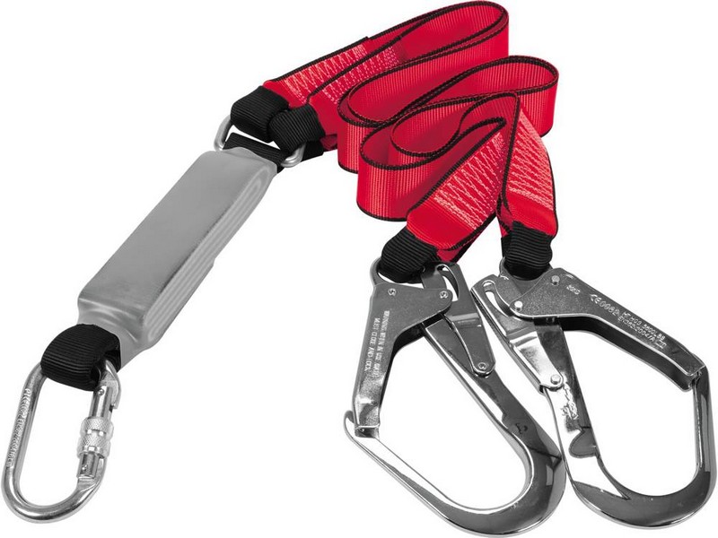 Zawartość zestawu: zatrzaśnik hakowy x2, karabińczyk, linka bezpieczeństwa, amortyzator