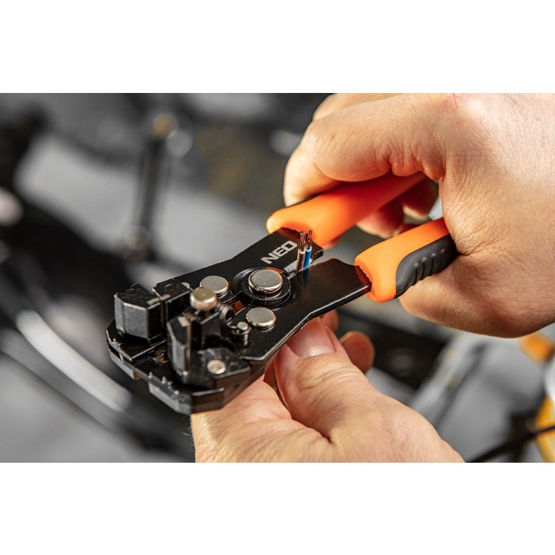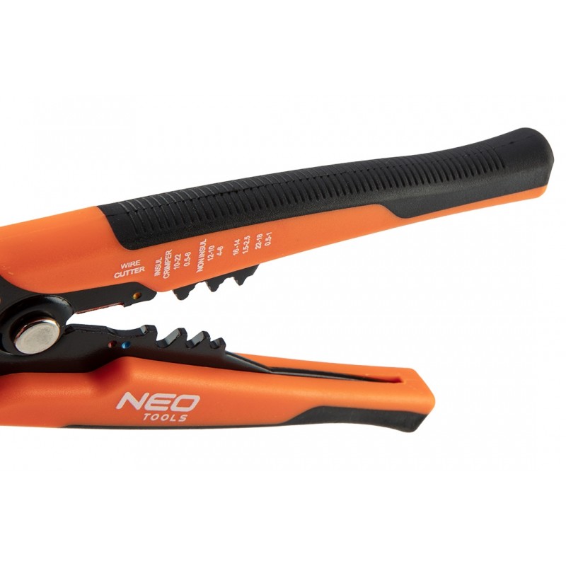 Szczęki wykonane są z wytrzymałej stali Cr12moV o twardości 52 - 60 HRC, co zapewnia długoletnią wytrzymałość narzędzia. Uzupełnieniem narzędzia jest obcinak przewodów, a dwumateriałowy, ergonomiczny uchwyt podniesie komfort pracy. Marka NEO spełnia oczekiwania profesjonalistów.