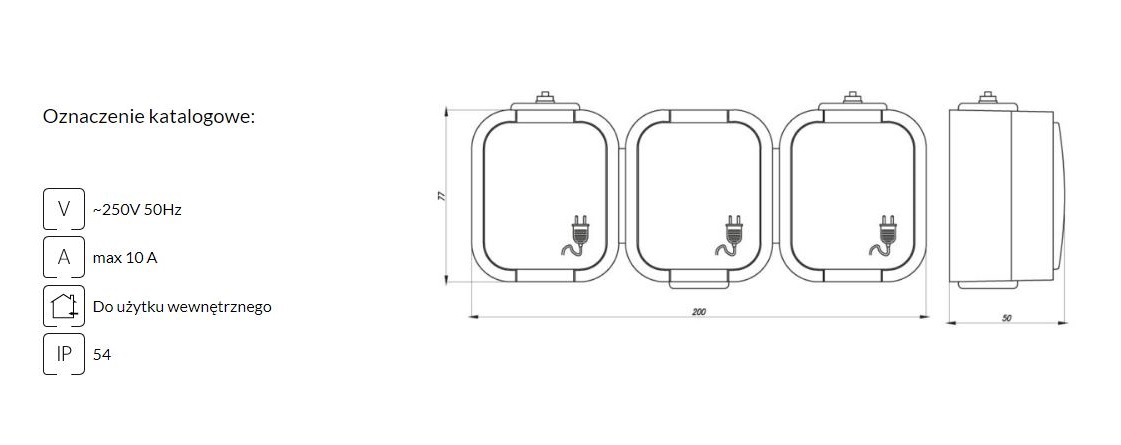 Gniazdo wtyczkowe potrójne 3x2P+Z bryzgoodporne z klapką w kolorze wyrobu, IP54
