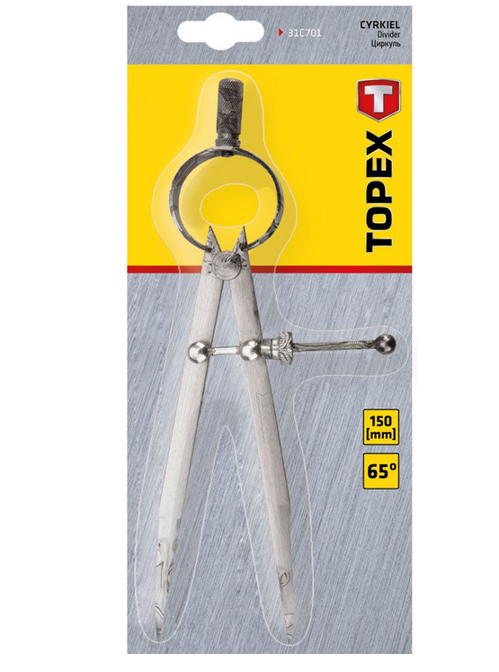 Cyrkiel ślusarski 150mm Topex 31C701 to narzędzie do trasowania kształtów na powierzchniach metalowych, drewnianych lub z tworzyw sztucznych. Cyrkiel Topex 31C701 wykorzystywany jest najczęściej do prac ślusarskich i przy majsterkowaniu. Prowadnica cyrkla ślusarskiego 31C701 pozwala na precyzyjne ustawienie i utrzymanie wyregulowanego rozstawu.