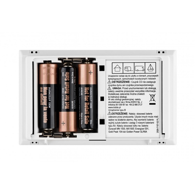 Zasilanie bateryjne umożliwia zamontowanie detektora w najbardziej optymalnym miejscu oraz gwarantuje ochronę także w przypadku zaniku napięcia zasilania w sieci. Po 10 latach od aktywacji zasilania czujnik poinformuje o konieczności wymiany urządzenia.
