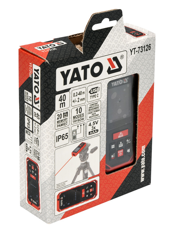 Dalmierz laserowy Master Carton MC20 Yato YT-73126 40m to elektroniczne narzędzie, które umożliwia szybkie i precyzyjne pomiary odległości w zakresie od 0,2 do 40 metrów. Jedną z głównych zalet dalmierza jest jego wielofunkcyjność, gdyż pozwala na pomiar odległości, obliczanie powierzchni i kubatury, a także na różne pomiary zgodnie z twierdzeniem Pitagorasa. Dodatkowo, dalmierz Yato YT-73126 posiada także pamięć na 20 wyników pomiarowych, co umożliwia łatwe śledzenie i zapisywanie danych. Bez względu na potrzeby pomiarowe, dalmierz Master Carton MC20 YT-73126 spełni oczekiwania zarówno profesjonalistów, jak i amatorów.