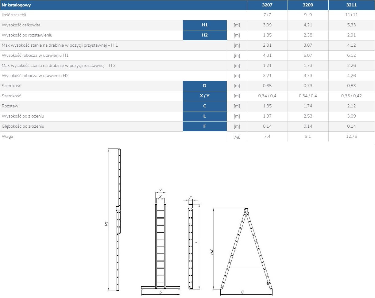Dostępna do wysokości całkowitej 5,33 m (2 x 11 szczebli).