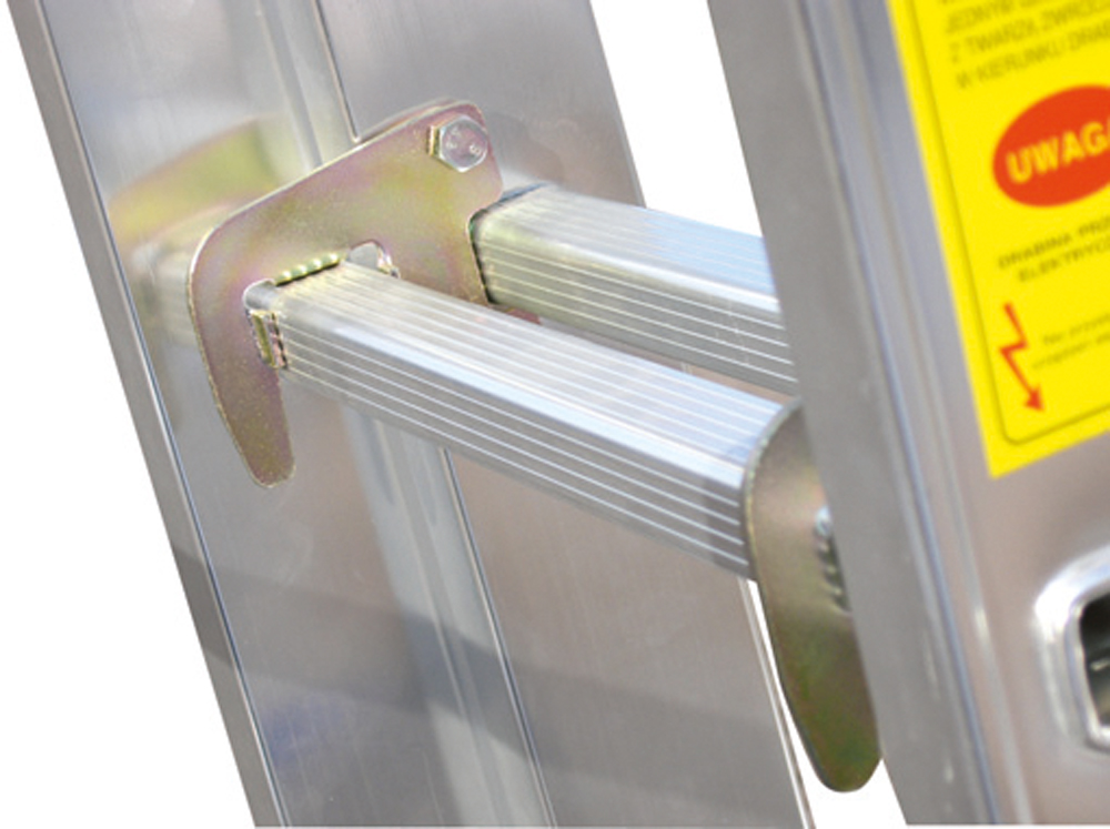 Pracując na tej drabinie mamy poczucie bezpieczeństwa zdzięki antypoślizgowym stabilizatorom z tworzywa sztucznego.