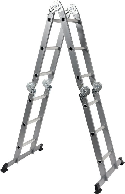 Drabina wielofunkcyjna 4x3 o wysokości max 3,4m. Spełnia wymogi normy europejskiej PN EN131 o nośności na stopień 150kg. Składa się z czterech segmentów połączonych mocnymi i wytrzymałymi przegubami.