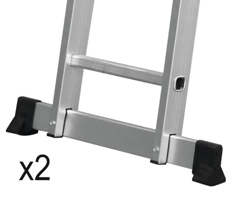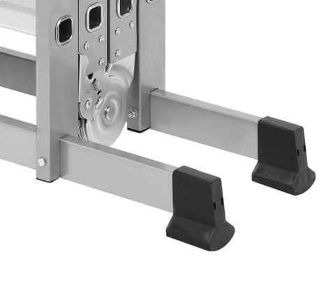 Ponadto drabina zakończona jest dwoma szerokimi stabilizatorami znacznie zwiększającymi stabilność i bezpieczeństwo podczas użytkowania. Każdy stabilizator posiada dwie wyprofilowane stopki antypoślizgowe, które zwiększają przyczepność do podłoża w każdej pozycji rozłożenia drabiny.