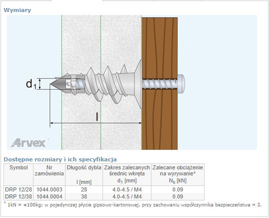 Samowiercący dybel driva z poliamidu ( nylonu 100% ) do montażu w płytach gipsowo-kartonowych .