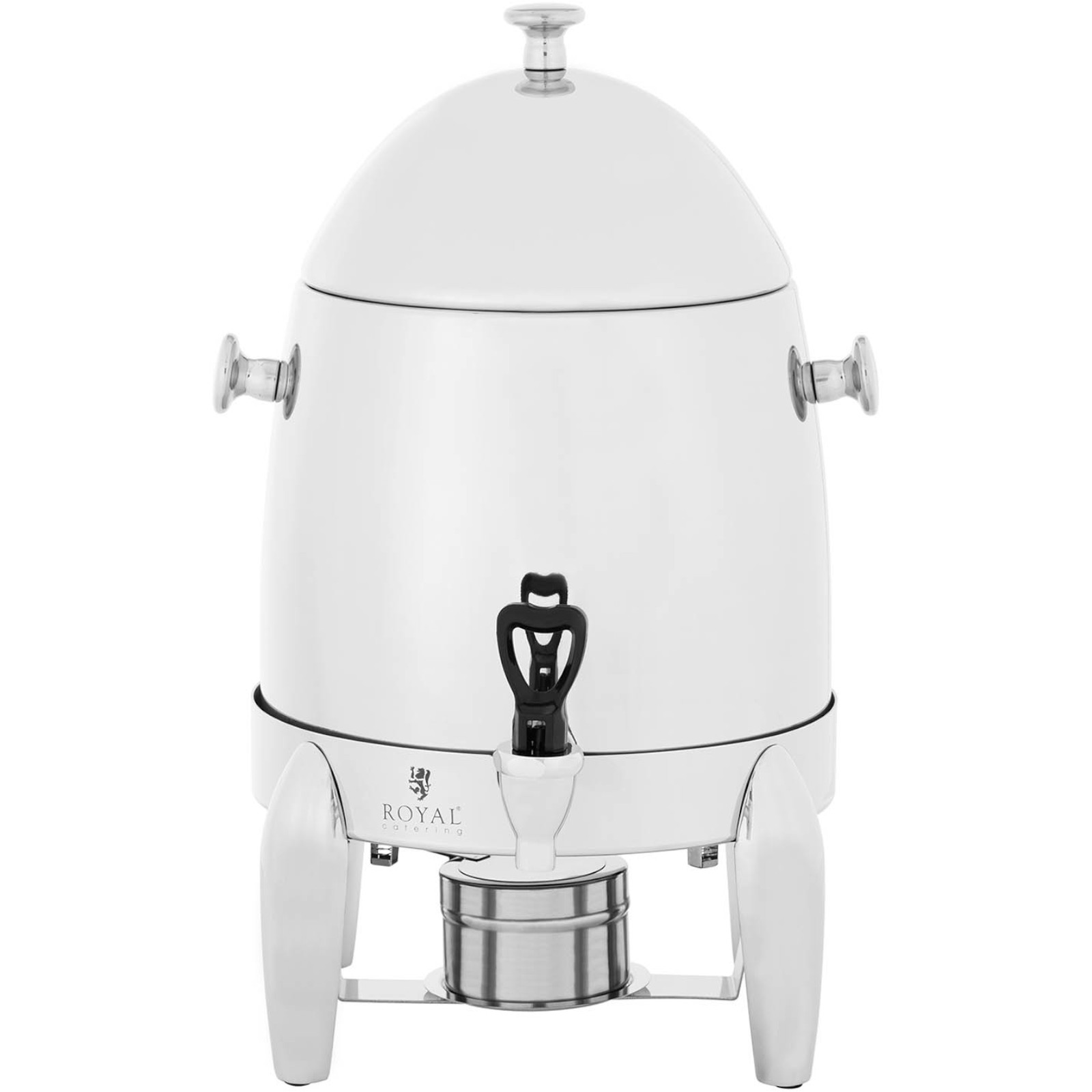Dozownik marki Royal Catering sprawdzi się w hotelowych bufetach, czy na przyjęciach z cateringiem do serwowania napojów. Pojemność dozownika wynosi 12 l. Wykonany został ze stali nierdzewnej co zapewnia mu atrakcyjny wygląd. W komplecie znajduje się wkład na pastę, pozwalający utrzymywać ciepło napojów. Cylindryczny pojemnik ma średnicę 270 mm. Płynnie działający kran pozwala precyzyjnie odmierzać porcje napoju. Maksymalna wysokość naczyń pod kranem wynosi 128 mm.