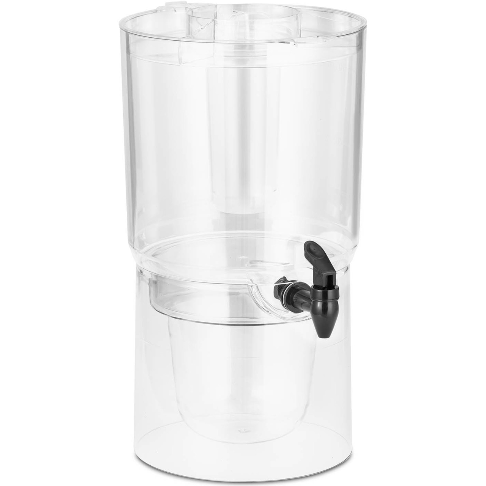 Dozownik do napojów marki Royal Catering sprawdzi się w bufecie do serwowania wody, herbaty mrożonej, mleka czy soków owocowych. Pojemność dyspensera wynosi 6,6 l. Przezroczysty plastik pozwala na elegancką ekspozycję napoju. Wewnątrz znajduje się wkładka, która wypełniona kostkami lodu pozwala schłodzić napoje bez ich rozwadniania. Płynnie działający kranik pozwala precyzyjnie odmierzać porcje napojów. Maksymalna wysokość szklanek pod kranem wynosi 80 mm. Urządzenie wykonane zostało z trwałych materiałów, odpornych na zarysowania i łatwych w czyszczeniu.