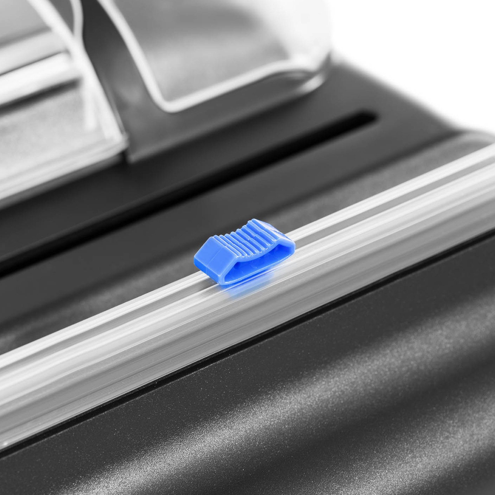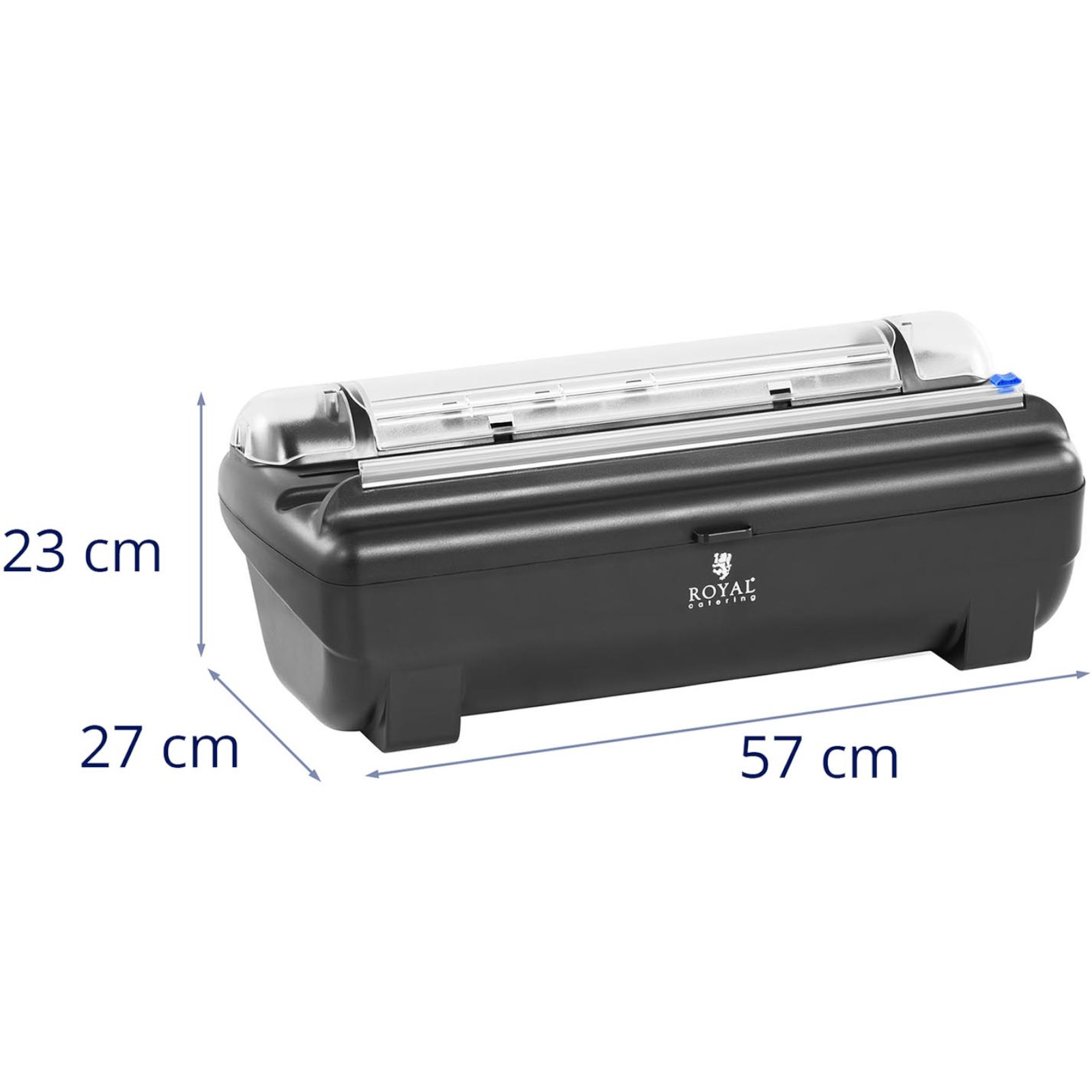 Podajnik do folii spożywczej marki Royal Catering sprawdzi się w każdej kuchni do dozowania i docinania folii do potrzebnego rozmiaru. Przestronna obudowa pomieści rolki o średnicy do 15 cm i szerokości 48 cm. Ostry nóż niezawodnie przycina folię. Konstrukcję urządzenia wykonano z ABS, które jest wyjątkowo solidne i łatwe w czyszczeniu. Antypoślizgowe nóżki zapewniają bezpieczną obsługę dyspensera.