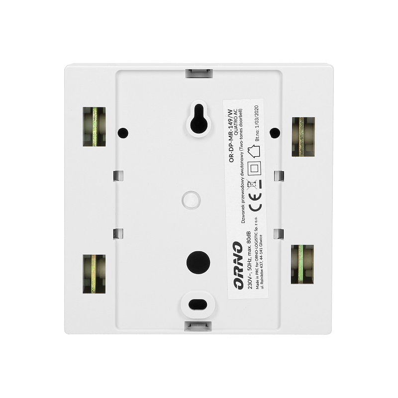 Dzwonek dwutonowy QUARTO AC to prosty w montażu i wygodny w użyciu dzwonek elektromechaniczny z funkcją przeciwblokady łącznika. Przeznaczony do zastosowana w pomieszczeniach zamkniętych z instalacją dzwonkową prądu zmiennego 230V, np. w domu, mieszkaniu, sklepie itd.