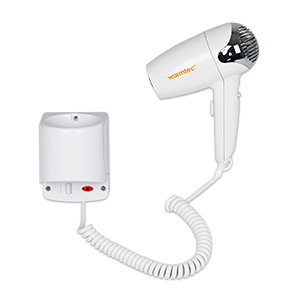 Suszarka hotelowa do włosów z przeznaczeniem do montażu stacjonarnego np. w łazience hotelowej.