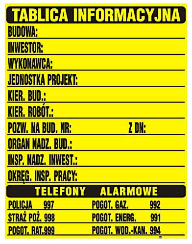 TABLICA INFORMACYJNA BUDOWLANA 690*460MM