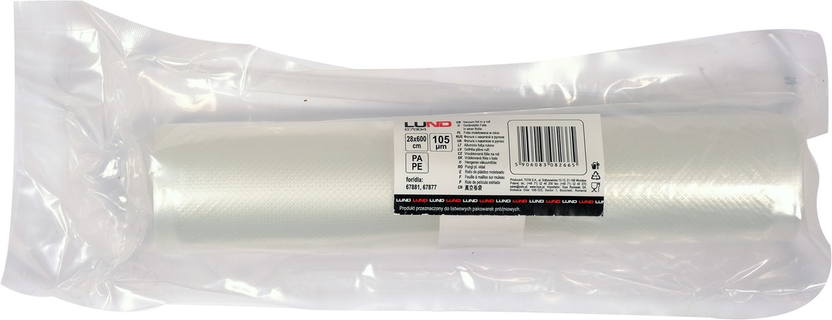 Folia do pakowania próżniowego 28x600 cm. Opakowanie zawiera 1 rolkę.