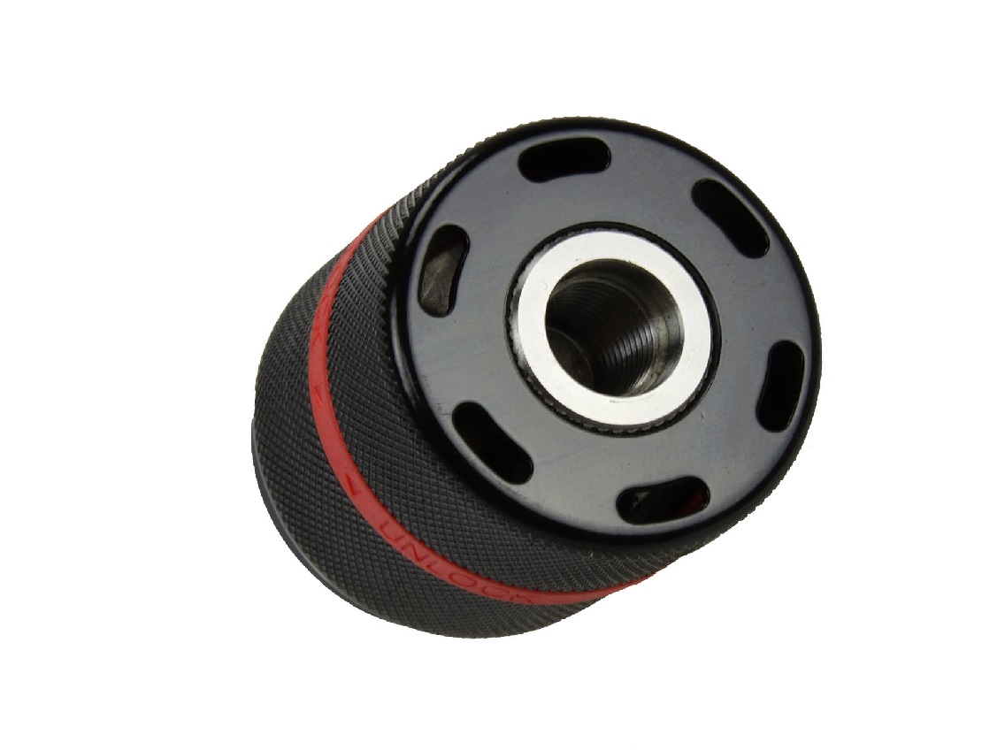 Radełkowana powierzchnia zewnętrzna pozwala na szybkie dokręcanie bez poślizgu dłoni, nawet w rękawicach