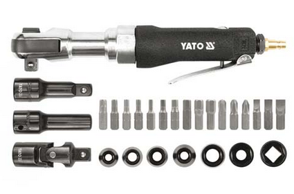 Grzechotka pneumatyczna Yato YT-0982 jest to klucz kątowy do prac montażowych i remontowych w przemyśle, rzemiośle, serwisach motoryzacyjnych. Narzędzie Yato YT-0982 napędzane jest silnikiem zasilanym sprężonym powietrzem. Grzechotka pneumatyczna Yato YT-0982 zastępuje grzechotki ręczne, przyśpieszając czas wykonywania czynności serwisowych i ułatwiając prace w trudno dostępnych miejscach, zapewniając bezawaryjne i długotrwałe użytkowanie.