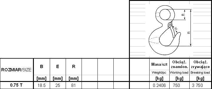 HAK Z UCHEM I ZABEZPIECZENIEM DO 750 kg