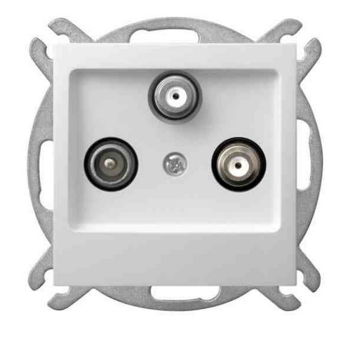 Gniazdo RTV-SAT z dwoma wyjściami SAT, podtynkowe, bez ramki zewnętrznej.