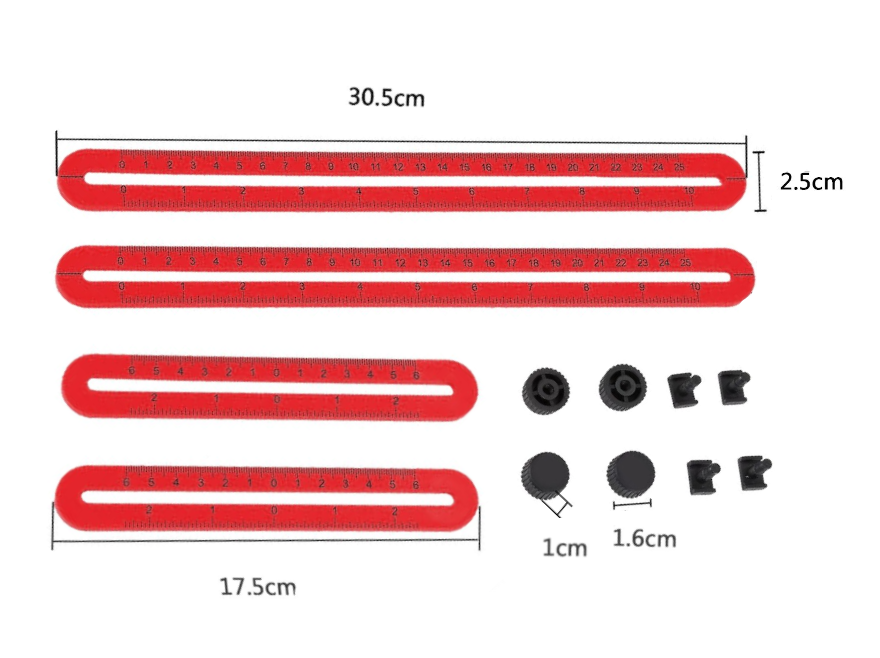 Kątownik nastawny Pro 3-01-05-E1-504 to narzędzie pomiarowe do przenoszenia wymiarów wzorcowych na inne elementy. Wzornik kąta Pro 3-01-05-E1-504 został wykonany z wytrzymałego tworzywa sztucznego (ABS), przez co jest lekki i łatwy w obsłudze. Na powierzchni płaskowników została na trwale naniesiona podziałka metryczna i calowa. Blokowanie nastawy jest realizowane za pomocą pokręteł.