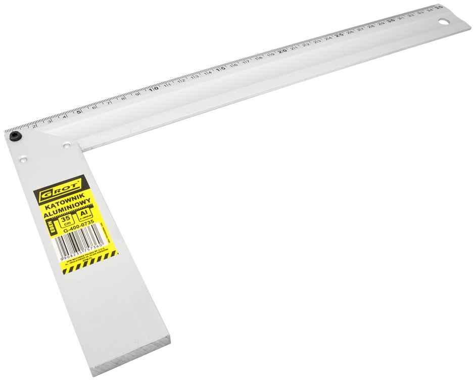 Kątownik uniwersalny Grot G-400-0730 to narzędzie do pomiaru kąta prostego i wyznaczania kąta 45° oraz trasowania. Kątownik Grot G-400-0730 posiada listwę aluminiową z naniesioną podziałką metryczną do 300 mm oraz stopkę. Narzędzie pozwala na kontrolę kąta prostego oraz trasowanie długości i linii równoległych.