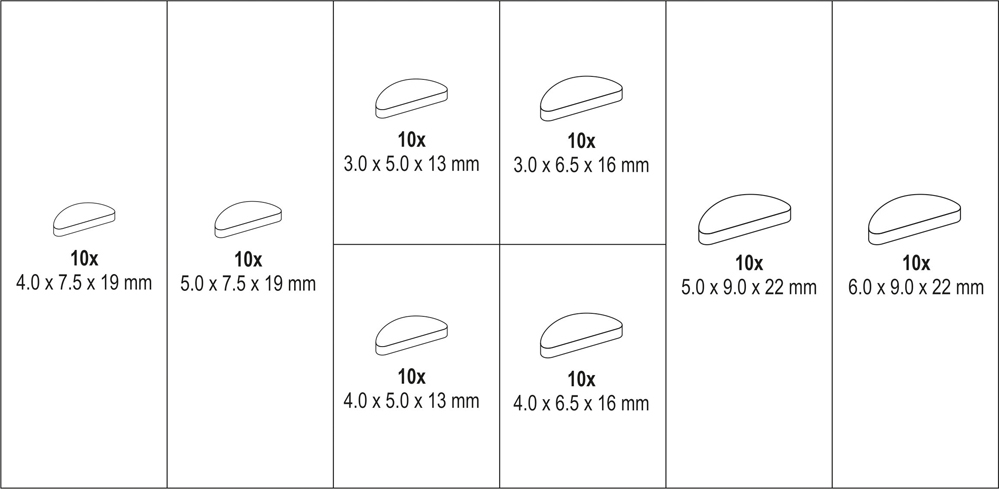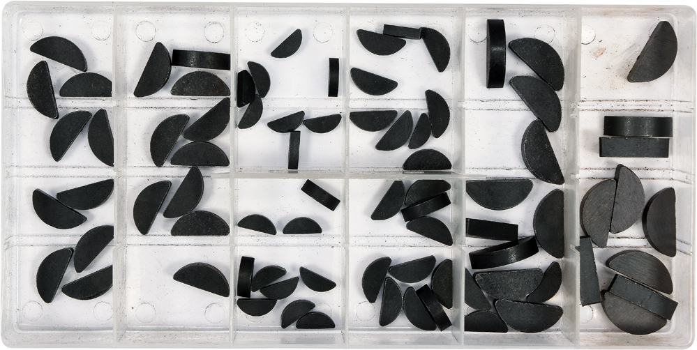 Zestaw klinów półokrągłych czułenkowych 80 sztuk. Całość w wygodnym sortowniku.