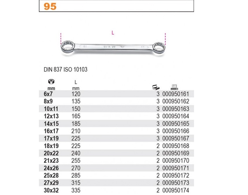 Beta Klucz oczkowy prosty dwustronny 14x15mm to dwustronny klucz zakończony końcówkami oczkowymi w różnych rozmiarach. Klucz oczkowy służy do przykręcania i odkręcania trudno dostępnych śrub, chroniąc dodatkowo przed ześlizgiwaniem się klucza ze śruby. Ponadto klucz oczkowy sprawia, że siła skierowana na śrubę rozkłada się równomiernie, tym samym lepiej chroniąc ją przed zniszczeniem. Klucz płasko-oczkowy firmy Beta został wykonany zgodnie z normą DIN 837 i ISO 10103.