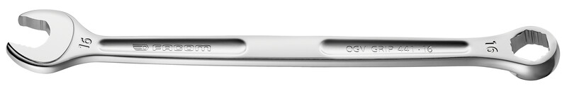 Główka klucza płaskiego: Widełki odchylone o 15°. Geometria klucz-uchwyt zoptymalizowana pod kątem poprawienia dostępu.