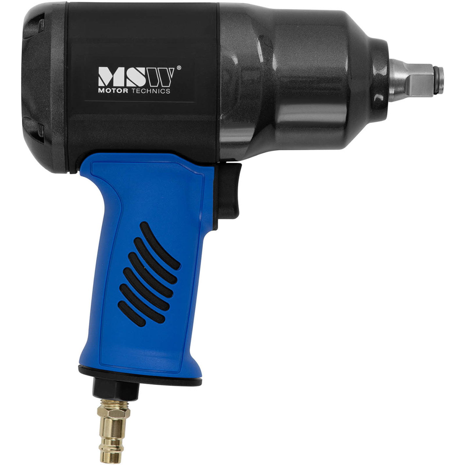 Klucz pneumatyczny udarowy marki MSW pozwala bez wysiłku dokręcić lub poluzować połączenia śrubowe. Sprawdzi się przy wymianie opon czy przy naprawach pojazdów. Klucz posiada kilka poziomów mocy. Wysokowydajny mechanizm udarowy Twin Hammer pracuje w wyważony sposób pomimo wysokich wartości, co sprawia, że nie występują silne wibracje. Ergonomiczny uchwyt, niewielka waga i kompaktowy rozmiar gwarantują precyzyjną obsługę i komfort pracy. Zarówno prędkość jak i kierunek obrotów są ustawiane bez konieczności przerywania pracy. Sprzęt wykonany został z wysokiej jakości i wytrzymałych materiałów.