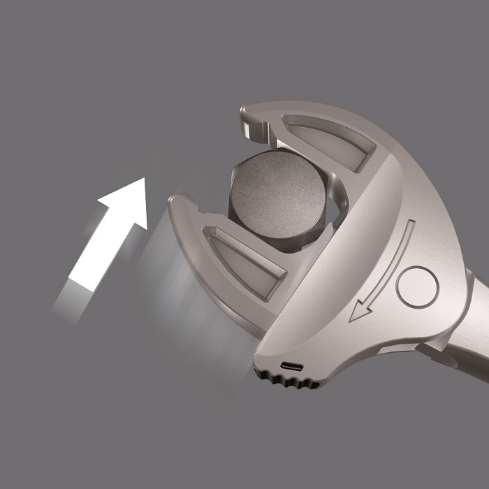 równolegle prowadzone szczęki zastępują kilka pojedynczych wymiarów klucza płaskiego. Samoczynne dopasowanie do wymaganej