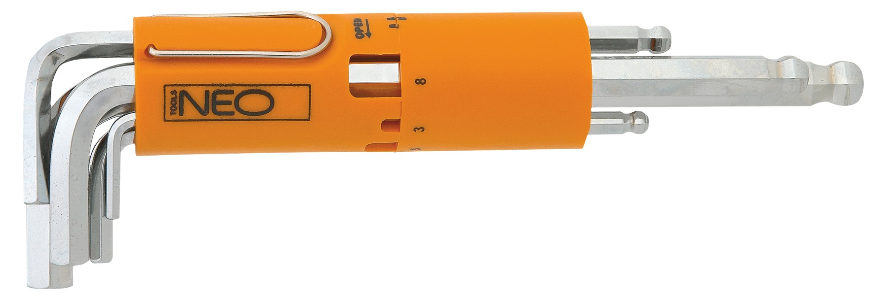 Zestaw zawiera 8 kluczy w rozmiarze od 2 do 10 mm w praktycznym opakowaniu.