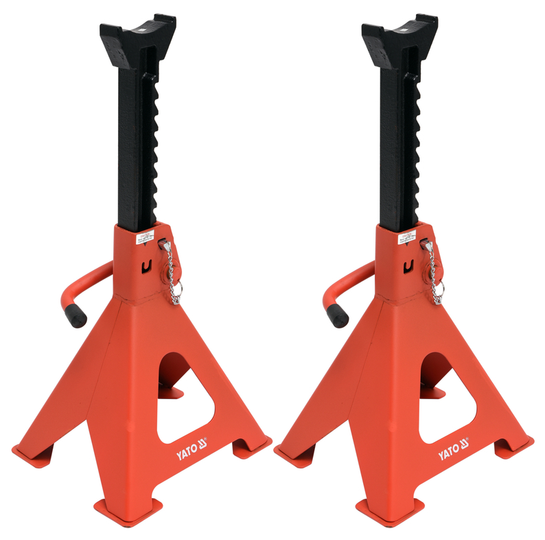 Podstawki samochodowe Yato YT-17312 to oprzyrządowanie warsztatowe służące podtrzymywania pojazdów lub innych elementów na wysokości. Podstawki pod samochód posiadają udźwig 6 ton każda oraz regulację wysokości od 382 do 580 mm, wyposażoną w zapadkowy układ blokady wysokości, dodatkowy klin, co gwarantuje łatwą i bezpieczną obsługę. Kobyłki pod samochód Yato YT-17312 zostały wykonane z wytrzymałej stali i pokryte powłoką antykorozyjną.