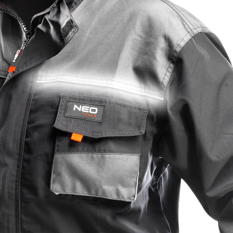 Kombinezon roboczy NEO (nr ref. 81-250-L) wykonany z wysokiej jakości materiału, wzmocnionego w miejscach narażonych na przetarcie. Potrójnie przeszyte szwy, zwiększające trwałość łączenia oraz opcję włożenia nakolanników. Solidne kieszenie przechowają niezbędne narzędzia, a dzięki jednoczęściowej budowie nawet duże obciążenie nie spowoduje dyskomfortu podczas pracy. Spodnie wyróżnia kieszeń na smartfona – powiększona względem dotychczasowych projektów, by zmieściła modele o większej przekątnej ekranu. Gwarantem jakości jest certyfikat europejski oraz wykonanie zgodne z normą EN ISO 13688:2013. Marka NEO spełnia oczekiwania profesjonalistów.