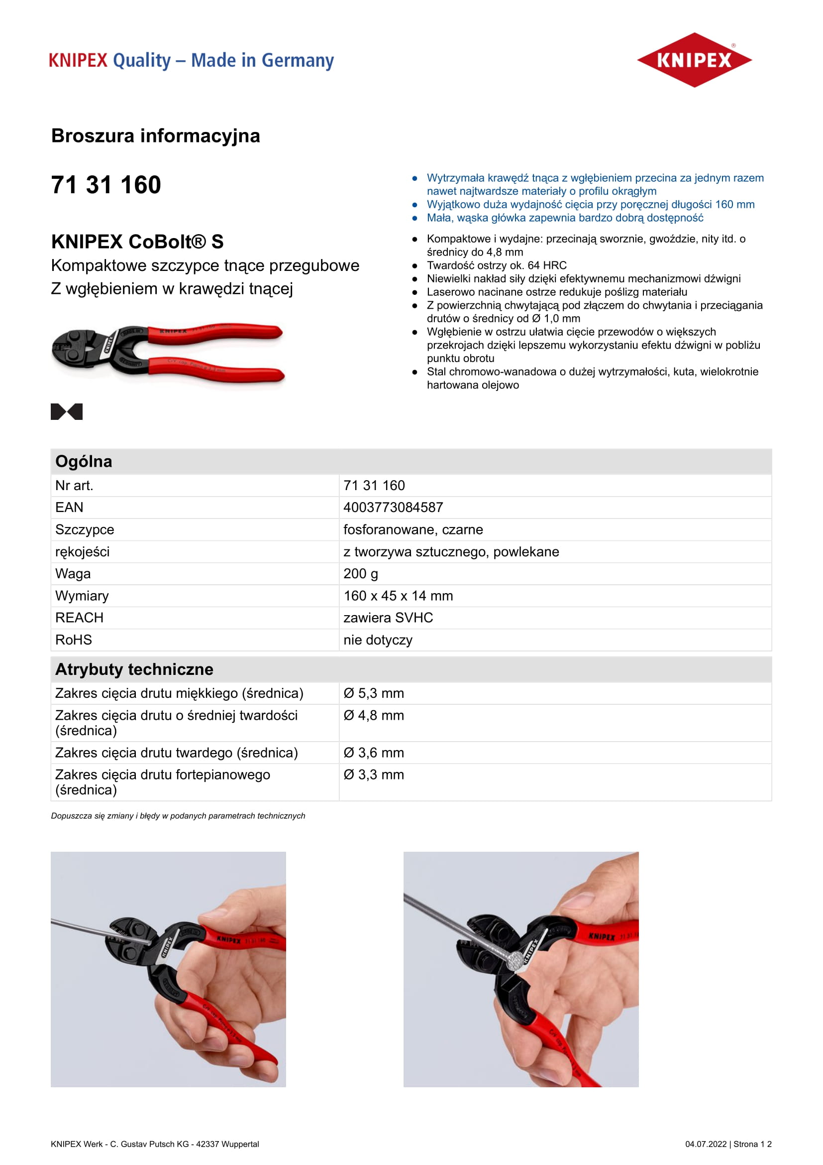 Zakres cięcia drutu twardego (średnica): 3,6 mm