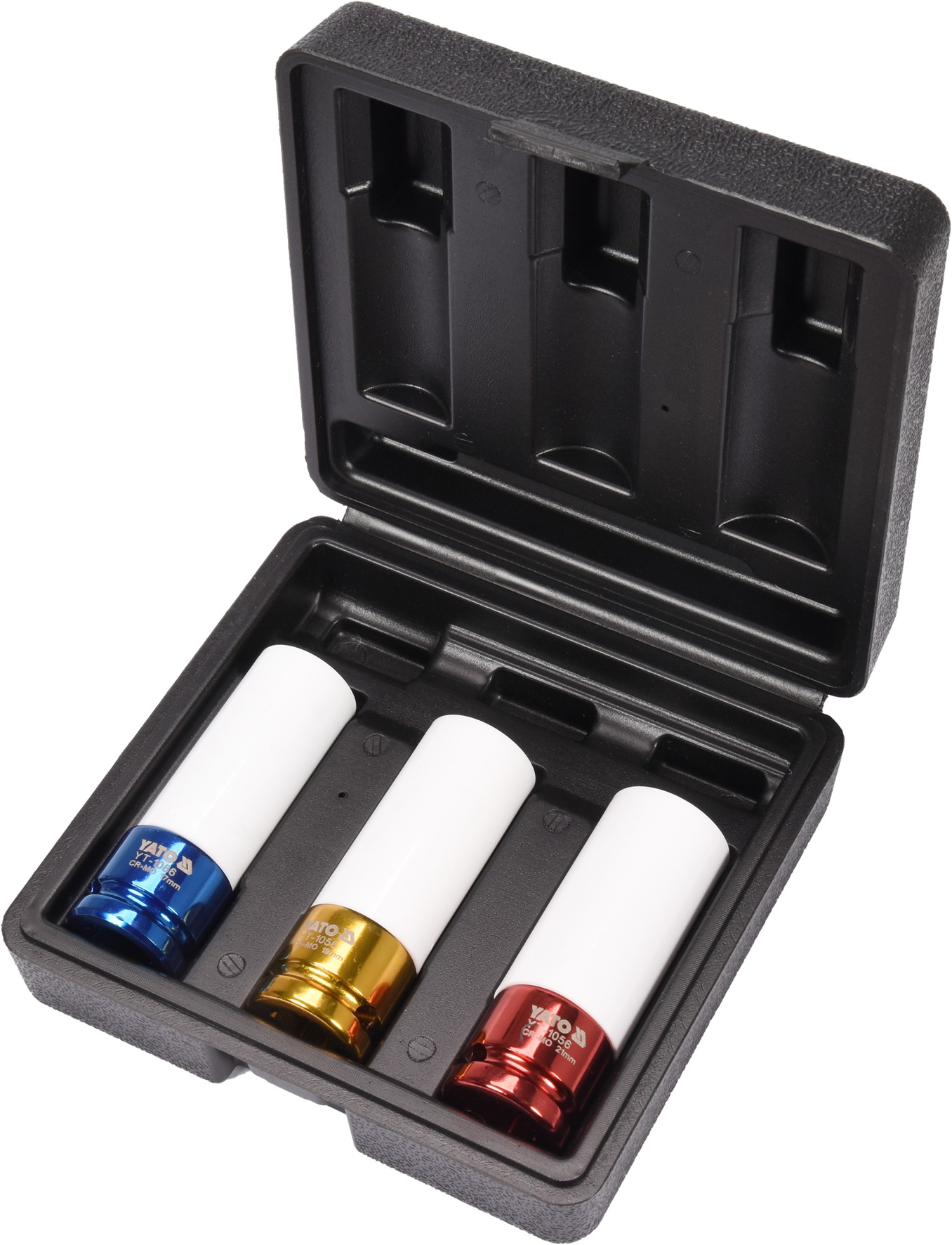 Nasadki posiadają chromowane wykończenie w 3 kolorach, które ułatwia rozróżnienie rozmiarów. Ultra cienkie ścianki umożliwiają odkręcanie śrub w ciasnych gniazdach felg aluminiowych.