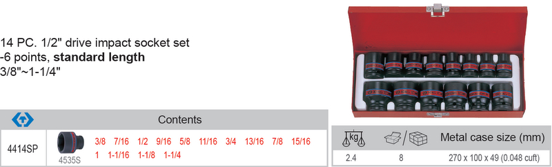 Strona główna » Narzędzia ręczne » Klucze » Klucze nasadowe » Nasadki udarowe » Zestawy nasadek udarowych » KOMPLET NASADEK UDAROWYCH CALOWYCH 1/2 6-KĄTNE 14 SZTUK