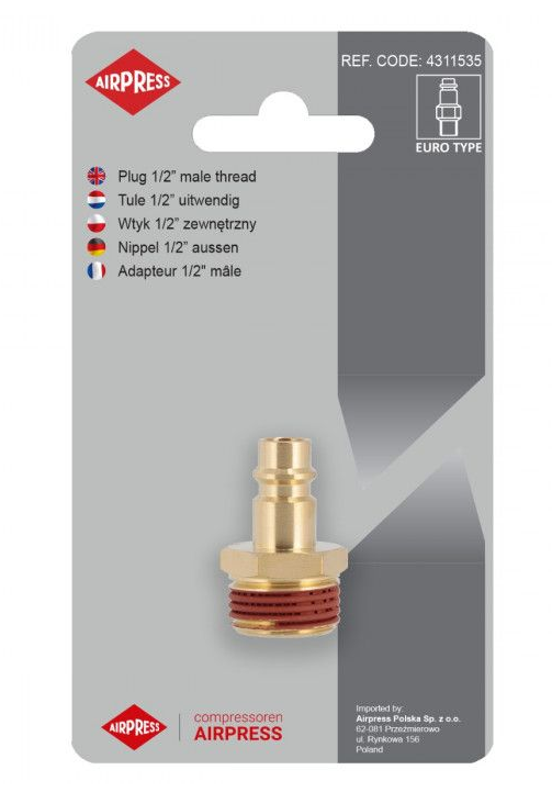 Końcówka do szybkozłączki z gwintem zewnętrznym 1/2" Airpress 4311535Końcówka do szybkozłączki z gwintem zewnętrznym 1/2