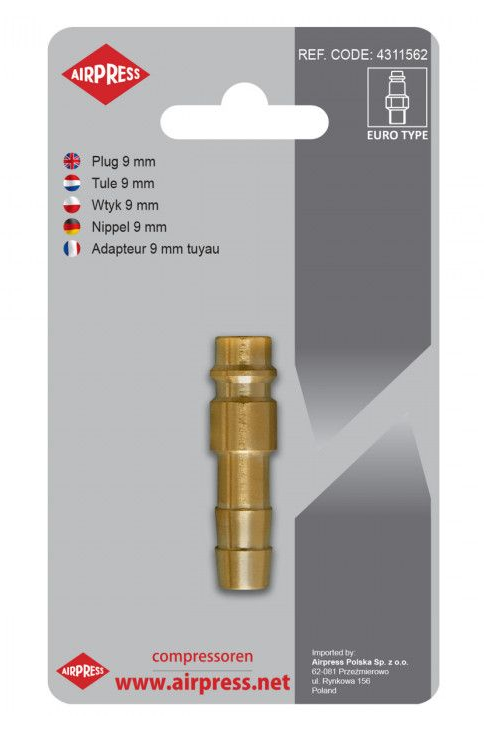 Końcówka szybkozłączki pneumatycznej na wąż 9mm Airpress 4311562Końcówka szybkozłączki pneumatycznej na wąż 9mm Airpress 4311562