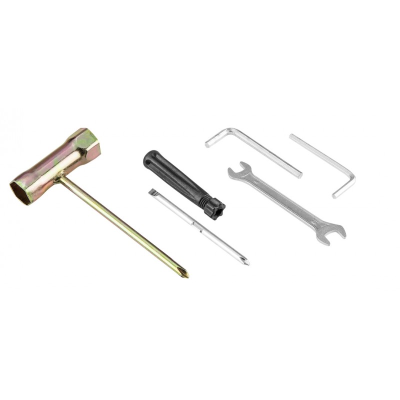 Dostarczana z bogatym zestawem akcesoriów, takich jak szelki nośne, klucze niezbędne do obsługi kosy, oraz osłony elementów tnących i nóż trójzębny.