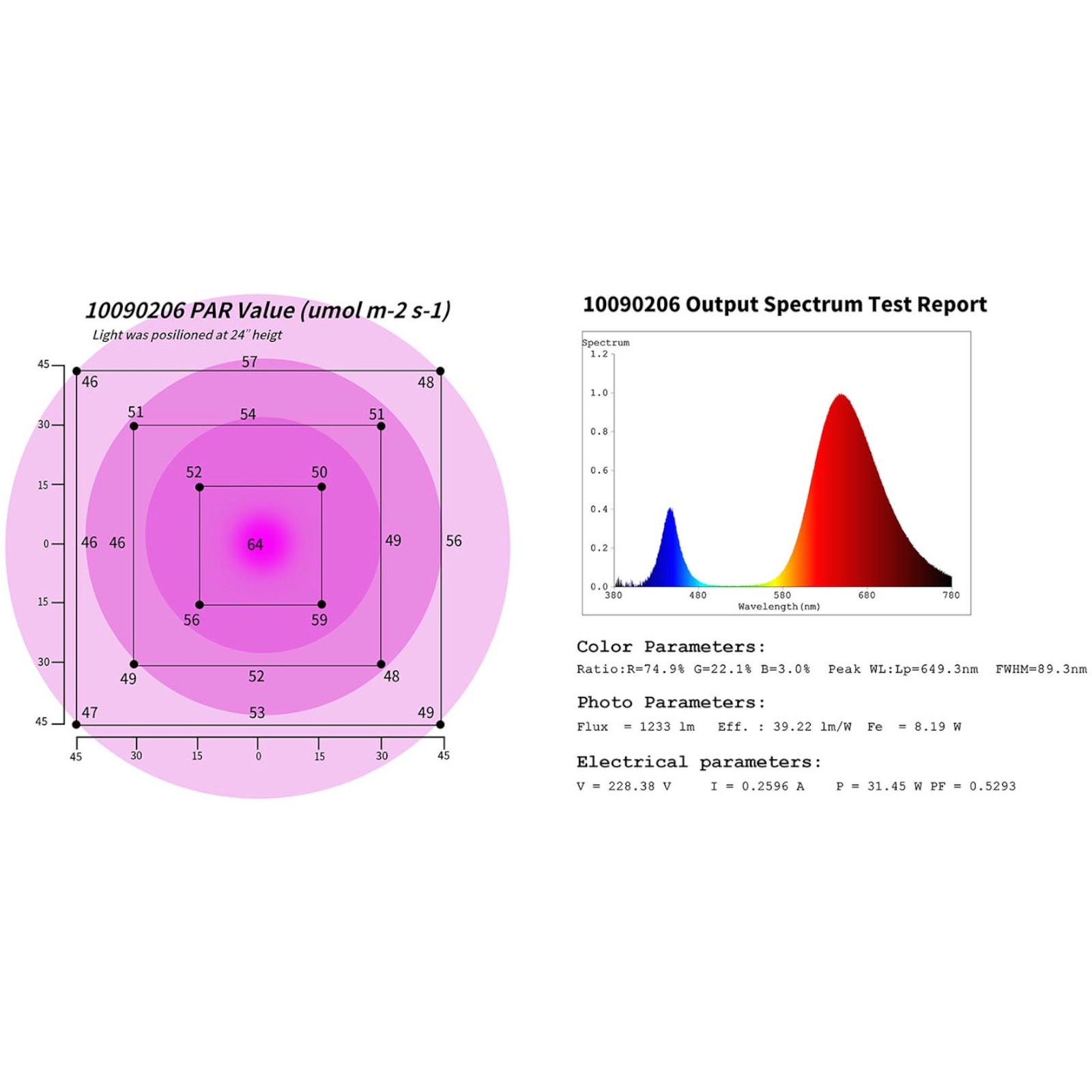 • - PPFD - 273μmol/m2/s@30cm