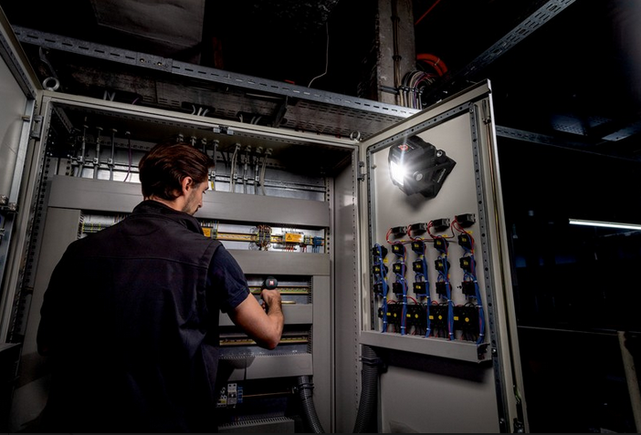 Głowica lampy może obracać się w poziomie o 360°, co zapewnia nieograniczoną liczbę możliwych pozycji oświetlenia, dostosowanych do konkretnego zadania. Funkcja płynnego ściemniania pozwala na regulację jasności w zależności od potrzeb, a czytelny wyświetlacz informuje o pozostałym czasie pracy akumulatora, co pomaga uniknąć sytuacji w, których lampa przestaje działać w niewłaściwym momencie.