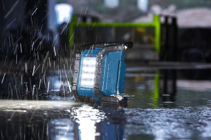 GLI 18V-1200 C Professional to kompaktowa i wytrzymała lampa robocza Bosch w klasie napięcia 18 V. 12 wydajnych diod LED zapewnia strumień świetlny do 1 200 lumenów, a tym samym doskonałe oświetlenie. Lampa robocza jest pyło- i bryzgoszczelna dzięki solidnej osłonie akumulatora (stopień ochrony IP 64). Wygodna obsługa za pomocą smartfona pozwala na szybką i łatwą regulację oświetlenia. Narzędzie posiada dwa ustawienia jasności, pięć ustawień kąta oraz gwint do statywu 1/4" pozwalający szybko dostosować się do każdej sytuacji podczas pracy. Lampa doskonale oświetla kompletny obszar pracy przez cały dzień. Produkt jest kompatybilny ze wszystkimi akumulatorami profesjonalnymi Bosch 18 V (system profesjonalny Bosch 18 V).