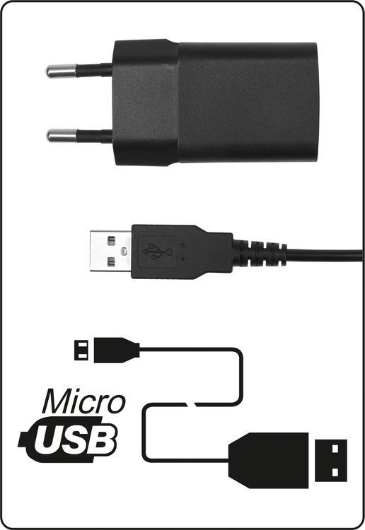 Ładowanie: ładowarka sieciowa 230V + kabel USB