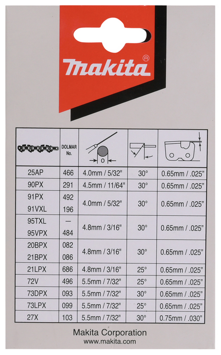 Strona główna » Maszyny ogrodowe » Akcesoria do narzędzi ogrodowych » Akcesoria do pił łańcuchowych » Łańcuch tnący 40 cm 1,3 mm 3/8" Makita 191H12-3