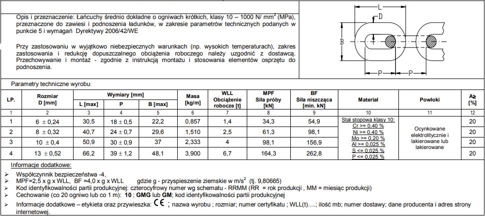 Łańcuch krótkoogniwowy bocznie zgrzewany o wysokiej wytrzymałości, ocynkowany i lakierowany proszkowo, w wiązce po 50 mb. , rozmiar 8mm , ok.1,51kg/mb