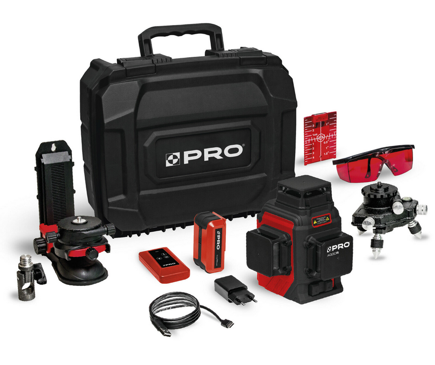 Laser wieloliniowy AQ3DR Red Plus Pro 3-01-06-L1-204 to narzędzie pomiarowe wykorzystywane przy pracach montażowych i wykończeniowych. Narzędzie emituje trzy czerwone płaszczyzny laserowe w poziomie i pionie o dobrej widoczności obejmując obszar 360°. Laser wyposażony  w funkcję samopoziomowania w zakresie 3°±1°  nie wymagającej ręcznej korekty. Dzięki blokadzie wahadła istnieje możliwość wyznaczania skosów. Urządzenie charakteryzuje się wysoką klasą odporności na zanieczyszczenia IP54.