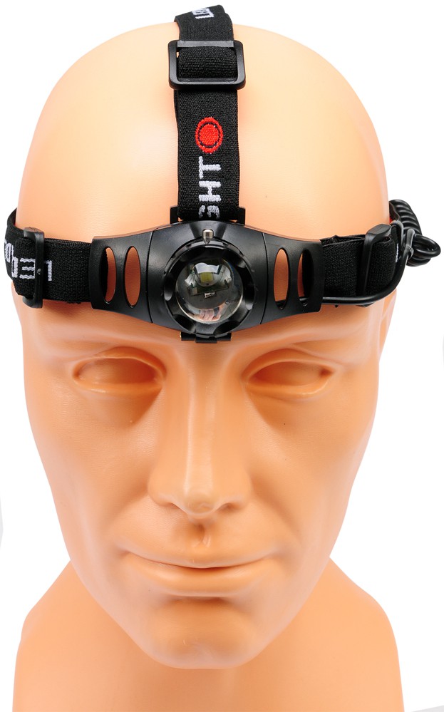 Latarka czołowa z regulowanymi pasami oraz przedziałem na baterie(baterie nie załączone)