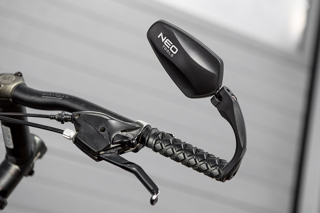 Lusterko rowerowe z ramieniem 91-011 marki NEO to lusterko, którego obudowa została wykonana z PP, a lustro z wysokiej jakości akrylu. Produkt rowerowy posiada cechę antywybuchową. Przystosowany jest zarówno do montażu z prawej jak i lewej strony. Oferuje wygodną możliwość regulacji ustawienia kąta. Lusterko posiada średnicę otworu montażowego 16 -22 mm. Jego waga wynosi zaledwie 91 g, dzięki czemu nie obciąża kierownicy. Marka NEO polecana jest miłośnikom jazdy na rowerze.