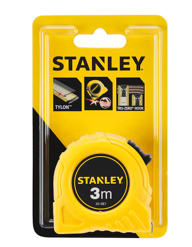 Miara zwijana 3m Stanley 0-30-487 to narzędzie do pomiaru długości do 3m. Miara Stanley została wykonana z taśmy stalowej polakierowanej zamkniętej w obudowie z tworzywa sztucznego. Miara stalowa Stanley 0-30-487 posiada blokadę zwijania taśmy, zaczep do paska i zaczep mierniczy zamocowany za pomocą 2 nitów.